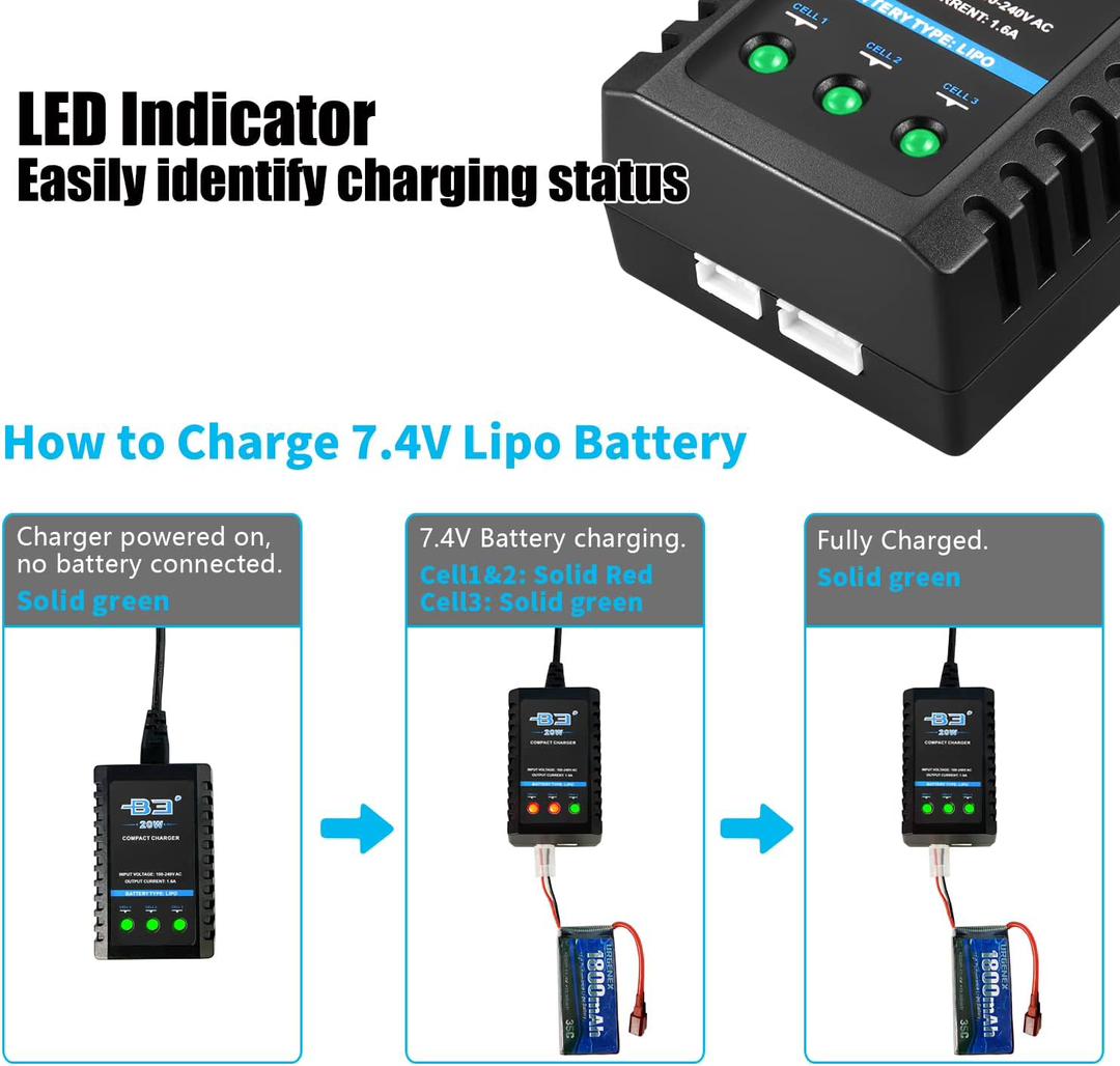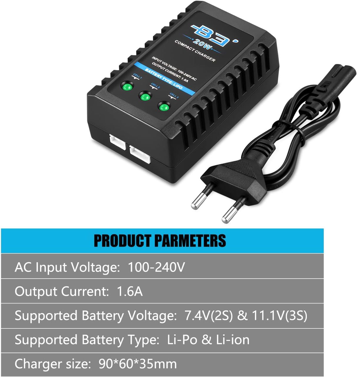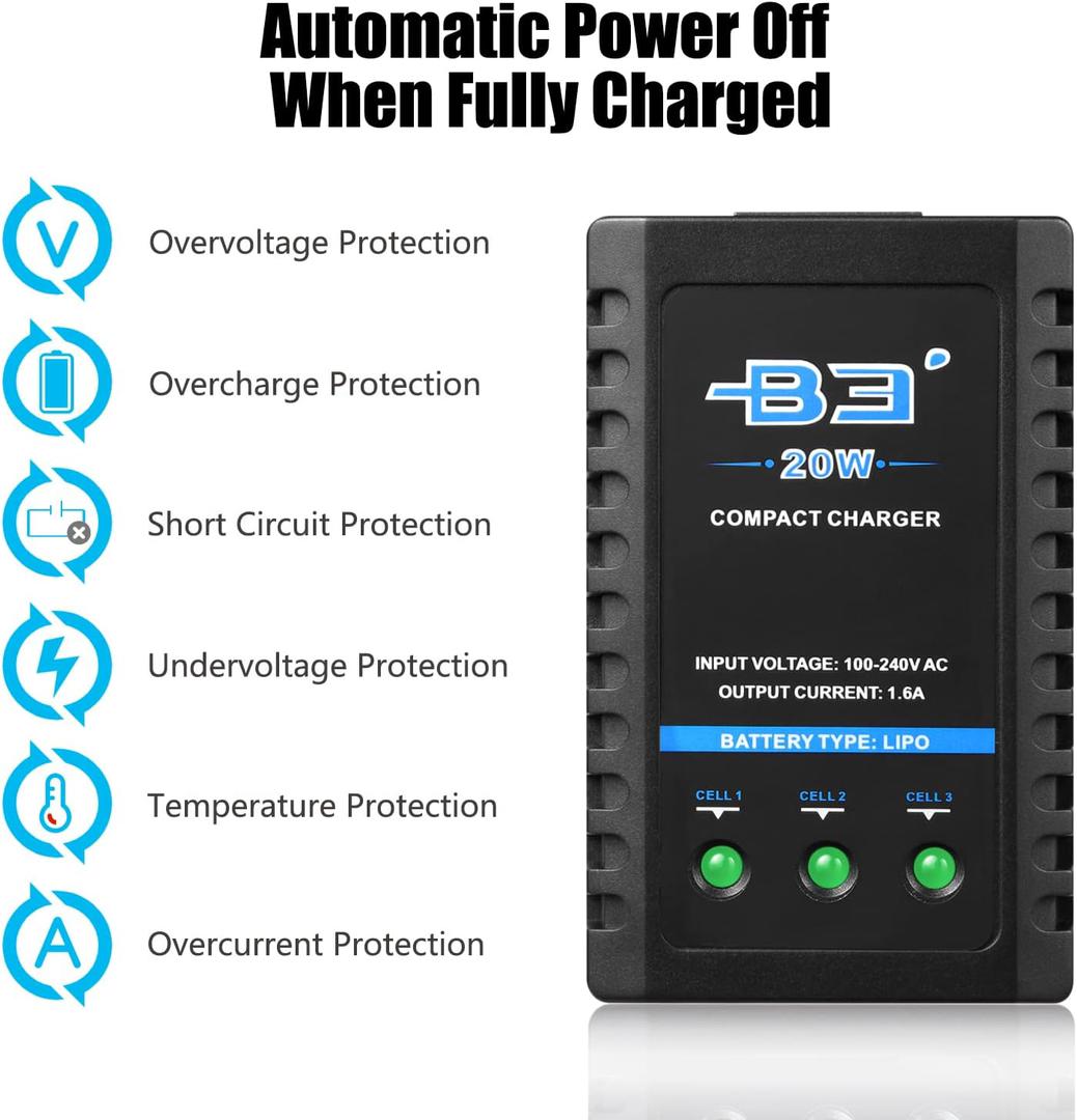 این شارژر لیتیومی B3 20w مناسب باتری های 2و3s میباشد