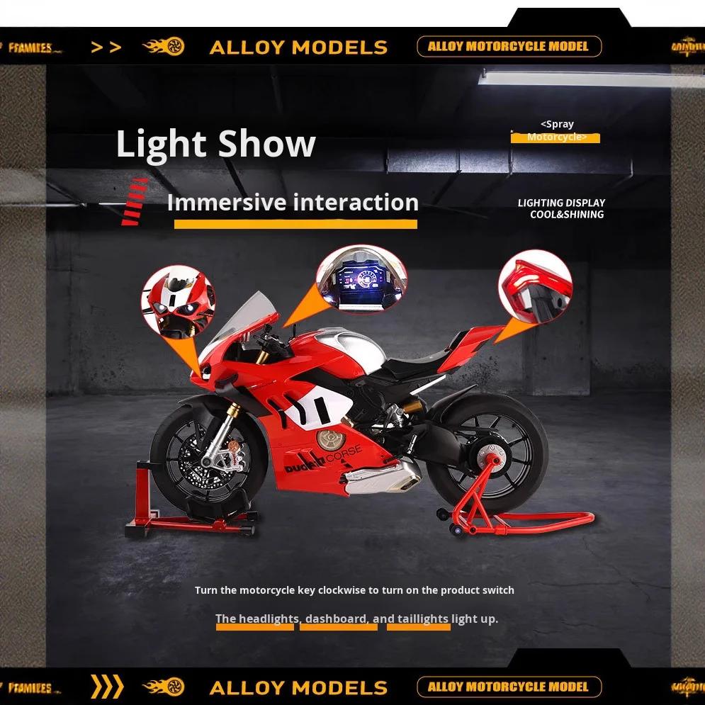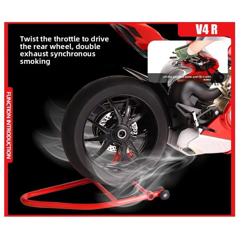 ماکت موتور دوکاتی Ducati v4r با قابلیت شبیه ساز صدا و قابلیت دودزا به همراه استند نگه دارنده چرخ
